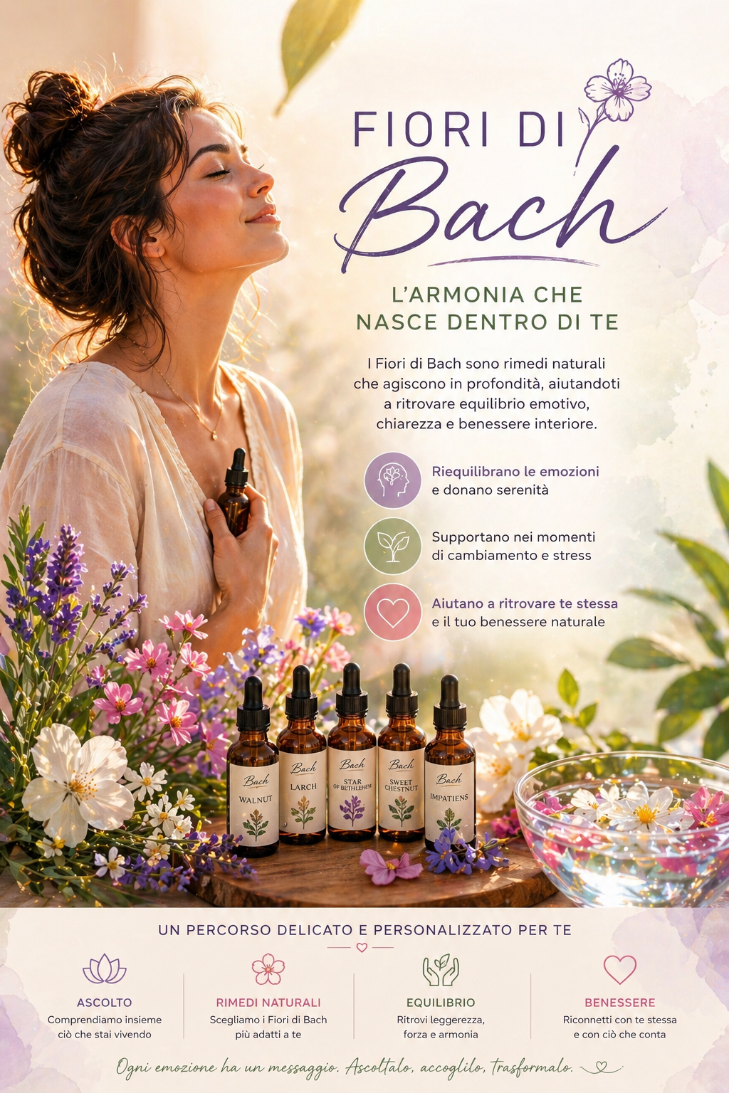 Il mio lavoro integra la competenza del Counseling con la precisione della Floriterapia Certificata.